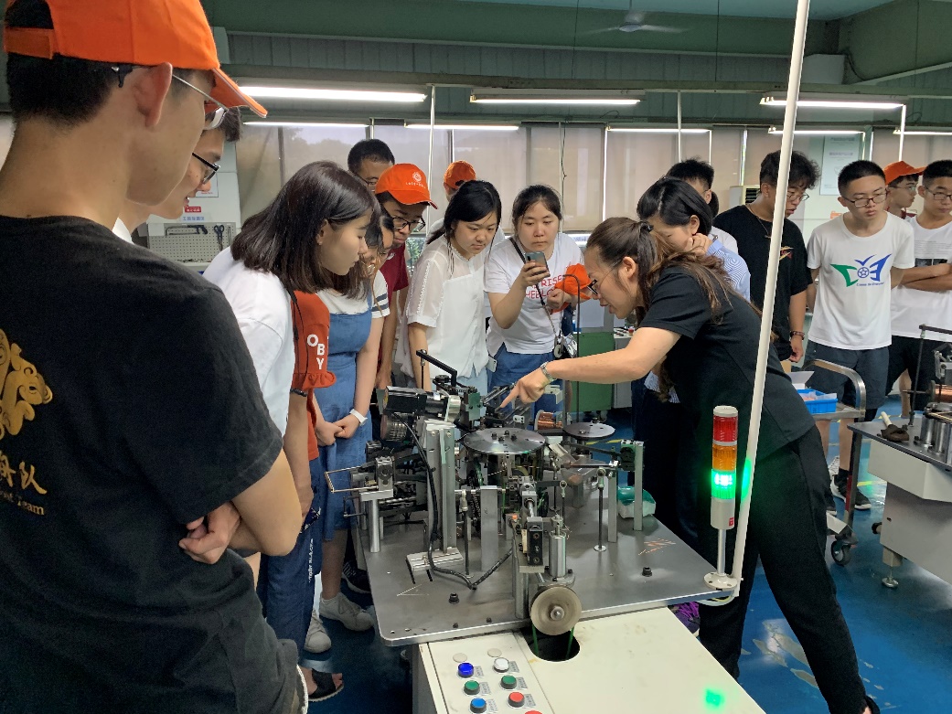 鱼跃医疗工作人员向学生介绍针灸针的生产过程